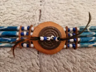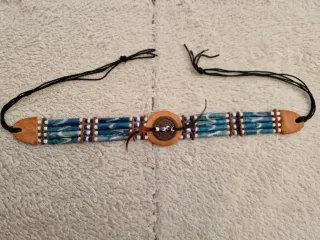 Gargantilla de estilo étnico con un diseño artesanal. Hecha a mano. - Elaborada con cuentas de colores y detalles en cuero. - Adornada con plumas naturales. - Cierre ajustable. Hago envíos. Entrega en Parla y Usera. Más cosas económicas en mi perfil.