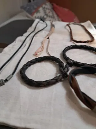 2 gargantillas una de cuero. 4 pulseras 3 de cuero una de hilo trenzada y otra Cierre acero inoxidable