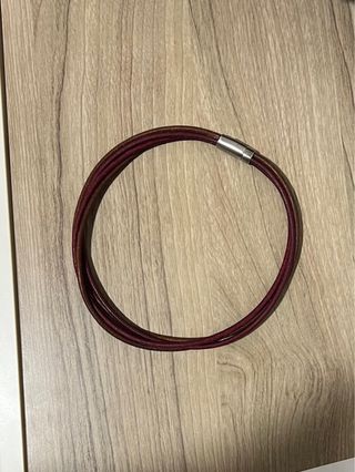 Elegante collar gargantilla de cuero con un cierre de plata. Color granate, en perfectas condiciones. - Material: Piel - Cierre: Plata