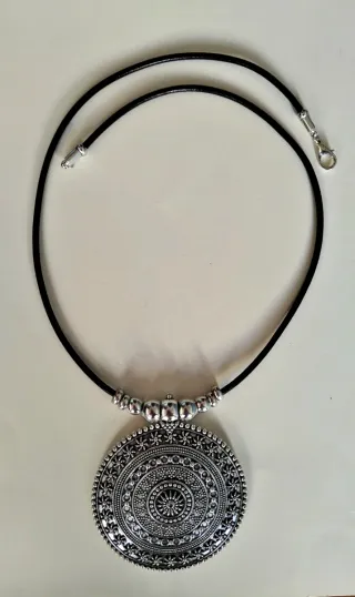 Collar de metal plateado con colgante. Disponible también en versión cuero. Visita mi perfil para más modelos. Descuento por compras. Bisutería, pendientes, collar, cuero, gargantilla, anillo, estilo Uno de 50, pulseras.