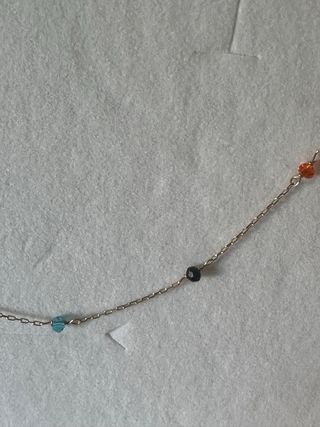 Elegante gargantilla de oro de 18 quilates adornada con pequeñas gemas de diversos colores. Una pieza delicada y llamativa. - Cadena fina de oro. - Gemas de colores variados distribuidas a lo largo de la cadena.