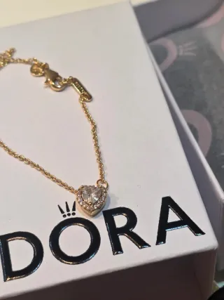 Elegante gargantilla Pandora con un diseño de corazón. La cadena está chapada en oro de 14 quilates. - Colgante en forma de corazón. - Detalles de circonitas alrededor del corazón. - Cadena fina y delicada.