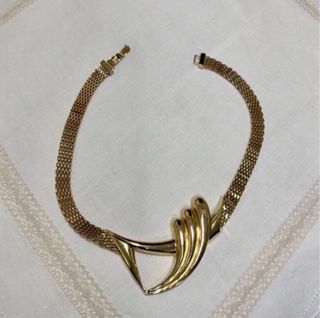 Elegante gargantilla con un diseño moderno y llamativo. - Acabado chapado en oro de 24 quilates. - Cadena tipo malla. - Detalle frontal con forma escultural. - Mide 42 cm. PRECIO NEGOCIABLE