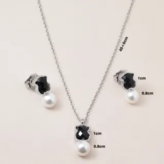 Elegante conjunto de Tous con diseño de oso. - Gargantilla con colgante de oso negro y perla. - Pendientes a juego con oso negro y perla. - Cadena de 45+5cm de largo. - Medidas del colgante: 1cm (oso) y 0.8cm (perla). - Medidas de los pendientes: 1cm (oso) y 0.8cm (perla).