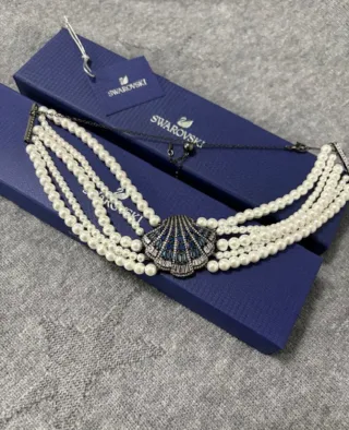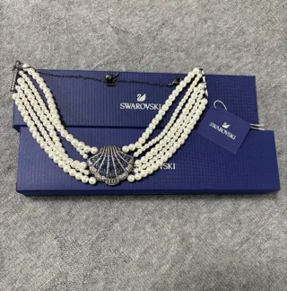 Gargantilla Swarovski Idyllia. - Concha de mar con cristales azules. - Perlas de cristal. - Cadena ajustable. Gargantilla Swarovski inspirada en el mar. Nueva sin estrenar. Envío con caja y bolsa... Km