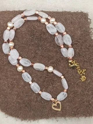 Collar Cuarzo Rosa y Perlas