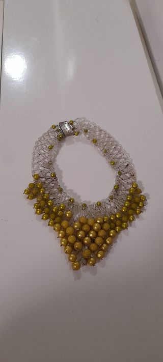 Collar gargantilla de 42 cm. Hecho por mi. A estrenar.No pesa nada. Perla central de Rio. Las demàs piezas sintéticas.