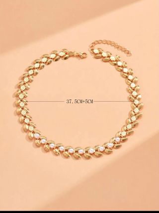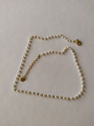Elegante gargantilla de perlas con detalles dorados. Medida 50 CMS de largo A estrenar