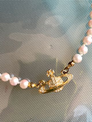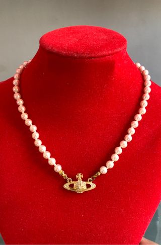 Cadena gargantilla de Perlas VIVIENNE WESTEOOD .. modelo orbita con Perlas (no auténticas) combinadas de tono rosa .. usado, muy bien cuidadas .. NO ACEPTO OFERTAS