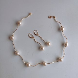 Nuevo único conjunto Collar / Gargantilla y Pendientes. Perlas imitación. Hipoalergénico. Assessories chapados oro 18K. Longitud 41 cm, pendientes 6 cm. Cuentas 1,2 cm. Hecho a mano en España. Excelente estado.
