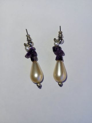 Conjunto de gargantilla y pendientes de perlas y amatistas. Pendientes colgantes.