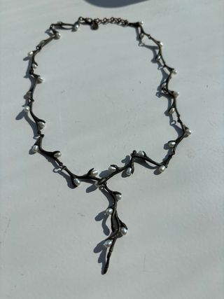 Preciosa gargantilla con un diseño delicado y elegante. Ideal para añadir un toque sofisticado a cualquier atuendo. - Elaborado con perlas de río. - Diseño de ramas con pequeñas perlas. - Cierre de gancho.