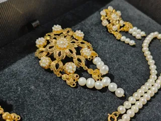 Usada en una ocasion gargantilla y pendientes perla y cristales