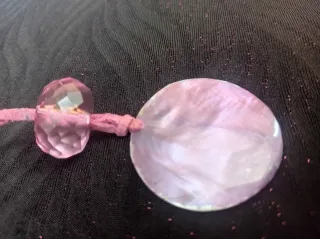 Elegante collar gargantilla vintage /usado poco/ con un colgante de nácar natural en tono lila precioso de forma circular. Y una cuenta de cristal facetada morada y redonda, suspendido de un cordón de piel color rosa morado a juego. Cierre mosquetón plata de ley con extensión ajustable en la parte trasera. Los collares con colgantes circulares a menudo simbolizan la eternidad y el amor eterno. Las piedras rosas, lilas o moradas como el cuarzo rosa o el nácar rosa, se asocian comúnmente con el amor, la ternura, la sanación emocional y la autoaceptación. Mide de largo con extensión 46 cm Más 10 cm del colgante Total 56 cm lar