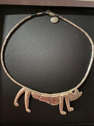 Javier Mariscal, collar gargantilla de plata de diseño, firmada, vintage años 90, 40 cm de largo