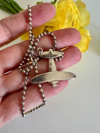 Gargantilla De plata de ley 925 en forma de bolitas y colgante forma de avion, Vintage medida 40 cm tal cual las fotos