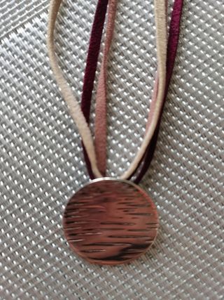 Preciosa gargantilla con un colgante en forma de corazón. Es un diseño sencillo y elegante, ideal para cualquier ocasión. - Cordón de color rosa. - Colgante de metal plateado con forma de corazón. - Está completamente nuevo. - El cordón mide 39cm