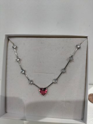 Preciosa gargantilla de plata con piedras , corazón rojo en el centro,puesto una vez, excelente regalo para el día de la madre ,PRECIO NO NEGOCIABLE