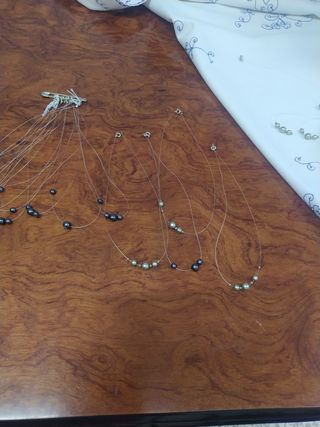 Preciosa colección de gargantillas con delicadas perlas negras y verdes. Ideales para añadir un toque elegante a cualquier atuendo. - Se incluyen 7 gargantillas en total. - Cierre de plata. - Perlas de diferentes tonos de verde y negro. Sólo recoger en domicilio no hago envíos