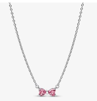 Elegante gargantilla de la marca Pandora con un delicado diseño. - Colgante en forma de corazón. - Detalle de circonita rosa. - Cadena de plata. - Cierre de mosquetón.