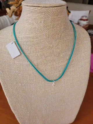 Collar de la marca Tous de doble hilo de nylon en color turquesa y un charm de la letra M de plata 925 (el colgante no es de la marca) - Gargantilla de hilo de nylon en turquesa, con acabados y cierre en plata de ley 925 - Detalle de osito Tous de plata en el cierre. - Nuevo, con etiquetas, caja y bolsa de Tous.