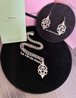Conjunto original de Tous colección Motif Power descatalogado, con sus respectivos sellos originales de Tous VER FOTOS, fabricados en primera plata de ley 925, son 3 piezas pendientes largos, colgante y cadena rolo gargantilla medida de cadena 42cm, diseño 5 motivos, las medidas del colgante y pendientes estan en fotos, usado poco, recién limpiado en tienda oficial, espectacular llamativos y versátil, No separo los conjuntos ya formados. Más ideas originales y exclusivas para regalos 🎁en mi perfil. Colección ideal para coleccionismo vintage