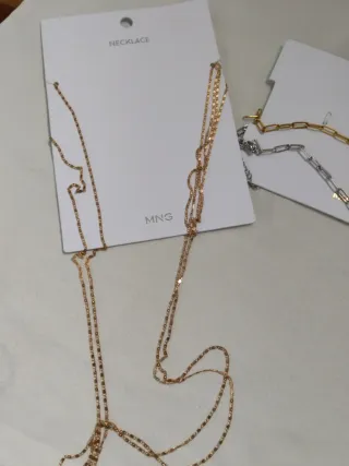 Set de dos collares gargantillas de la marca Mango. - Un collar es de color dorado largo 90 cm