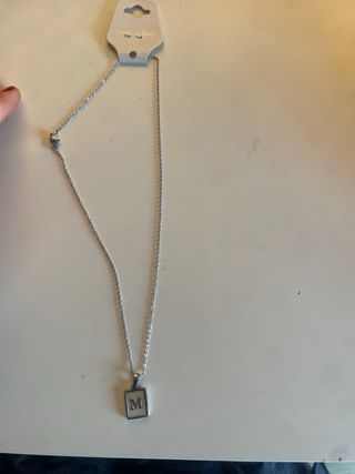 Preciosa gargantilla con un colgante rectangular que tiene grabada la letra M. Es de acero inoxidable y luce impecable. - Material: Acero inoxidable. - Diseño minimalista y elegante. - Colgante con inicial M.