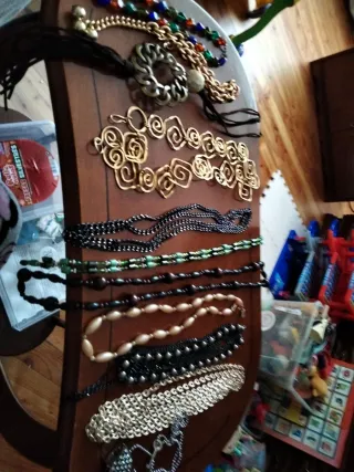Conjunto de collares variados para diferentes ocasiones. Son 11 collares diferentes - Diseño con eslabones dorados. - Cadena con detalles plateados. - Gargantilla con cuentas. - Collar con colgante circular.