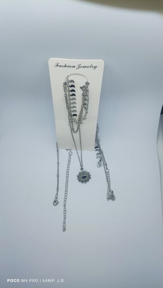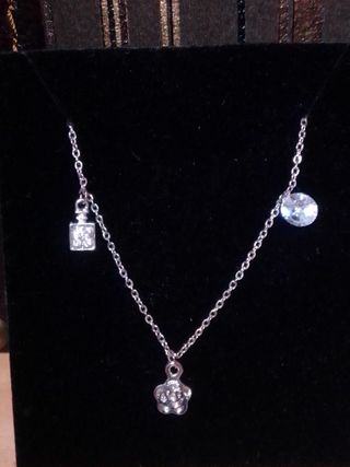 Preciosa gargantilla plateada con delicados colgantes. ✨ - Incluye varios colgantes de diferentes formas. - Cadena fina y elegante. - Ideal para un look diario o una ocasión especial. - Mide 47 cm.