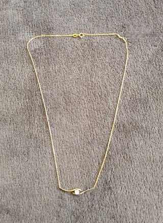 Elegante juego de gargantilla y pendientes de diseño dorado. La gargantilla tiene un cierre de presión y los pendientes son de tipo gota. Ambos lucen delicados y en buen estado. - Incluye una gargantilla y un par de pendientes. - Diseño dorado con detalles brillantes. - Estilo clásico y atemporal.