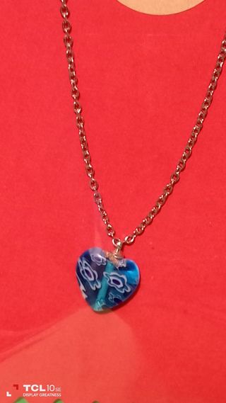 Lote compuesto por 5 gargantillas hechas con acero inoxidable y cristal. Tres son cristal de Murano ( los corazones) otro es cristal normal y otro cristal facetado electrochapado iridiscente Nuevos a estrenar. El precio es por todo