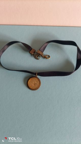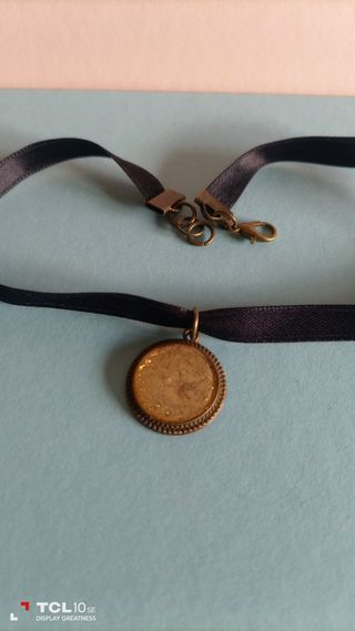 Preciosa gargantilla artesanal. Es una pieza única y delicada. - Tiene un dije circular con un diseño antiguo. - La cinta es de raso. - El cierre es de tipo mosquetón. -arcilla polimérica encapsulada en resina UV. A estrenar!!!