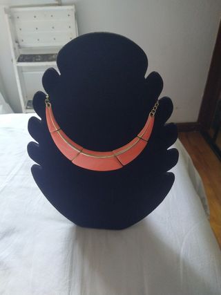Gargantilla, nueva, color coral con detalle dorado. Esmaltada