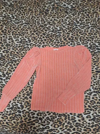 Jersey de mujer con un diseño moderno y elegante. Color salmon - Manga larga abullonada. - Tejido acanalado. - Cuello redondo.