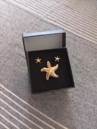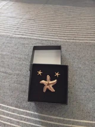 Conjunto de pendientes y anillo con diseño de estrella de mar, bañado en oro. Incluye un anillo y un par de pendientes. - Diseño de estrella de mar. - Baño de oro. - Incluye anillo ajustable y pendientes con cierre hipoalergénico