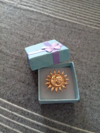 Anillo con diseño de sol y luna. Bañado en oro - Acabado dorado. - Talla ajustable.