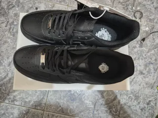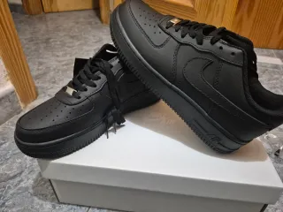 Zapatillas Nike Air Force 1 en color negro. Modelo clásico y versátil. - Diseño de caña baja. - Cierre de cordones. - Detalle metálico en los cordones. - Logo de Nike en la lengüeta y el talón. - Suela de goma. - Talla 42.