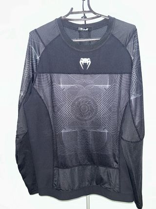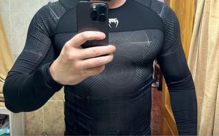 El material de la camiseta es de tela de compresion con costuras reforzadas que proporciona un efecto de segunda piel para reducir el riesgo de lesiones por friccion y tambien tiene cinturilla de silicona para que la camiseta se mantenga en su lugar . Apta para Judo, Jiu Jitsu etc . Se la compro mi pareja pero le queda pequeña, no esta usada, solo probada por unos segundos y esta en perfecta condicion , no tiene ningun defecto. Composición: 86% poliéster/14% elastanon.