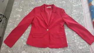Elegante chaqueta de color rojo para mujer. Un básico versátil para cualquier armario. - Diseño de corte clásico. - Un solo botón frontal. - Dos bolsillos de solapa en la parte delantera.