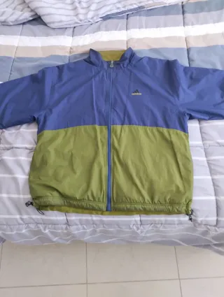 Chaqueta deportiva reversible de Adidas. - Diseño bicolor con azul en la parte superior y verde en la inferior. - Cierre completo con cremallera. - Cuello alto. - Cordones ajustables en el bajo. Tiene pocos detalles de uso faciles de sacar. Consultas al privado **EL PRECIO PUEDE SER NEGOCIABLE***
