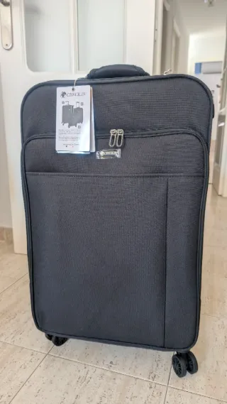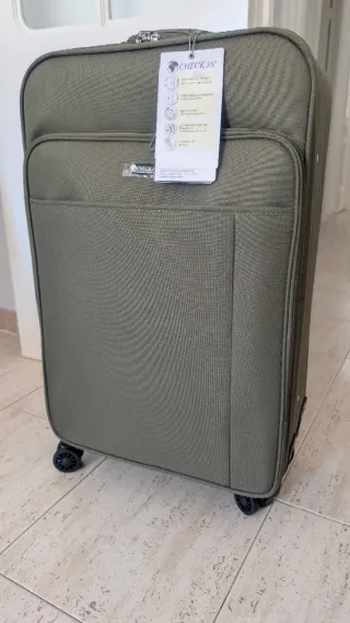 Capacidad en L. aprox.: 61-70 Dimensiones exteriores (A x L x A): 41cm x 26cm x 70cm Equipamiento: Compartimento para ropa, Compartimento con cierre de cremallera, Bolsillo(s) externo(s), Asa telescópica Extra: Manilla fija, Correas elásticas interior Material: Poliéster Peso in kg: 3.3kg Tamaño: L (65-70 cm) Tipo de candado: Cierre de cremallera Tipo de cierre: Cierre combinación Tipo de equipaje: Maleta blanda Tipo de ruedas: 4 ruedas Color: verde oliva Estado: Nueva/a estrenar