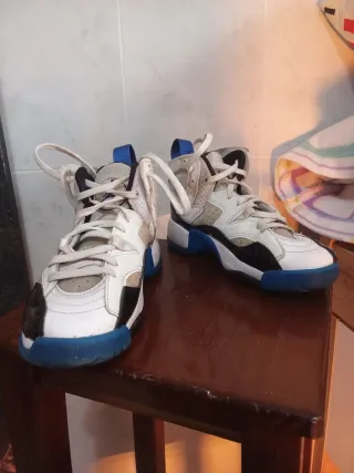 Zapatos deportivos Jordan en talla 37 - Diseño de caña alta. - Combinación de colores blanco, negro y azul. - Cierre con cordones -estamos rebajando más de 120 euros