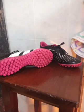 Zapatillas deportivas Adidas Predator. - Color negro con detalles en rosa. - Talla 38.5. -multitaco -Puedo rebajarlo un poco