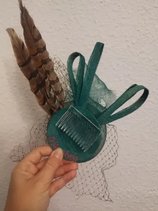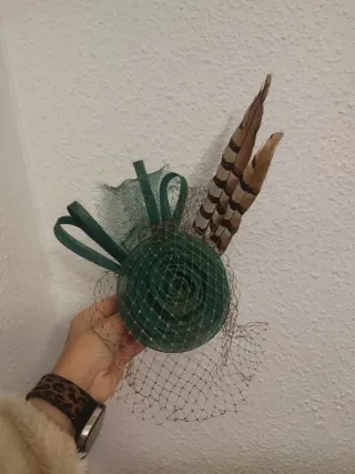 Elegante tocado de fiesta con detalles de plumas y una delicada redecilla. - Adornado con plumas naturales. - Incluye una redecilla de malla fina. - Incorpora un peine para su sujeción. - Diseño con cintas decorativas.