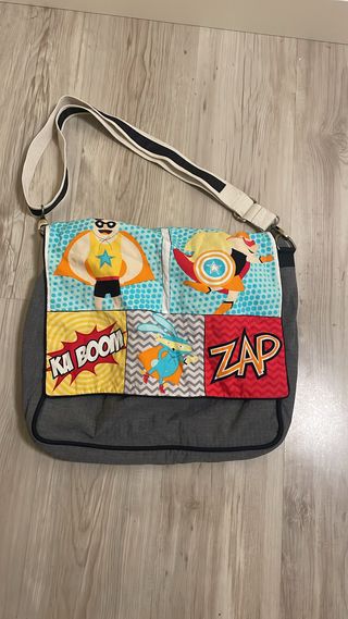 Bolso bandolera con un divertido diseño de superhéroes y onomatopeyas. - Estampado frontal con personajes y KA BOOM y ZAP. - Correa ajustable. - Material textil.