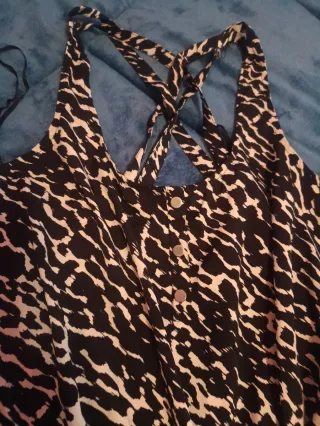 Mono de tirantes con un diseño muy suave y fino, ideal para el verano. Su estampado le da un toque único. - Tirantes cruzados en la espalda. - Cierre de botones en la parte delantera.