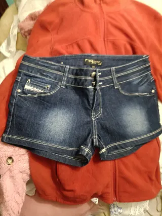 Pantalón corto vaquero de estilo moderno. - Diseño de cinco bolsillos. - Costuras decorativas en contraste. - Cierre de cremallera y botones.
