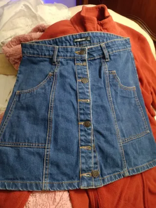 Falda vaquera con un diseño moderno y versátil. - Cierre de botones en la parte delantera. - Bolsillos prácticos a los lados.