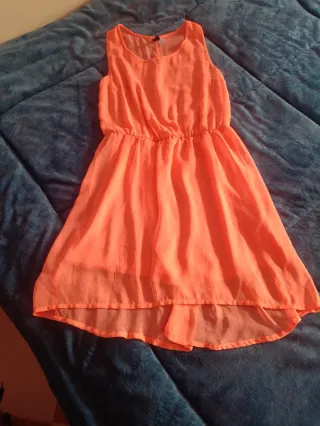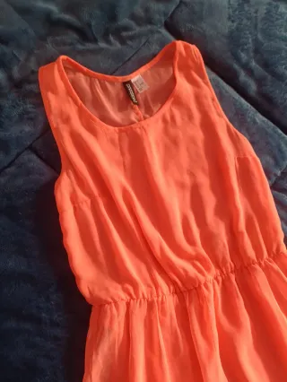 Vestido ligero de gasa en color naranja vibrante. Ideal para un look fresco y veraniego. - Diseño sin mangas. - Cintura elástica para un ajuste cómodo. - Tejido vaporoso y fluido.